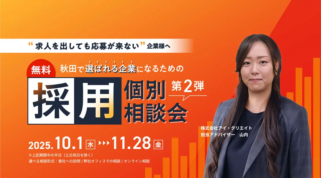 アイ・クリエイトでは、このようなお悩みをお持ちの県内企業様を対象に、「【第2回】秋田で選ばれる企業になるための採用個別相談会」を開催いたしました。