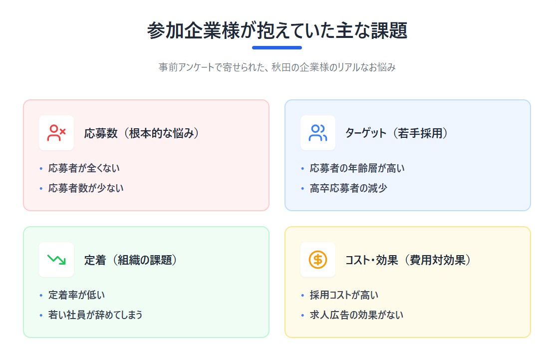 寄せられた回答を拝見すると、秋田の企業様が直面している切実な現状が見えてきます。
